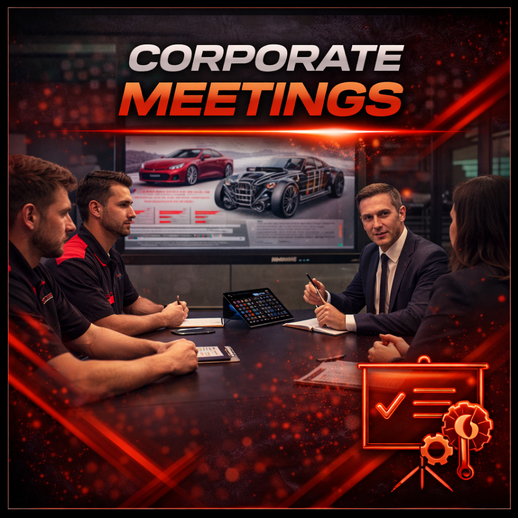 Our facility offers a professional and comfortable environment suitable for automotive workshops, corporate meetings, product launches, and private gatherings. Fully equipped and designed for flexibility.